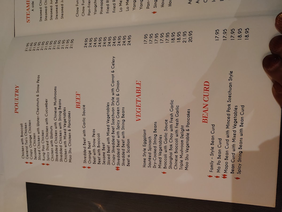 Highlights like the tender BBQ Spare Ribs and the succulent Peking Duck invite moments of shared enjoyment, perfect for gatherings or special occasions. For those who appreciate vegetable-forward dishes, selections such as Dry-Cooked String Beans and Chinese Broccoli with Fresh Garlic provide fresh, vibrant contrast alongside richer offerings like Sesame Chicken or Twice-Cooked Pork.